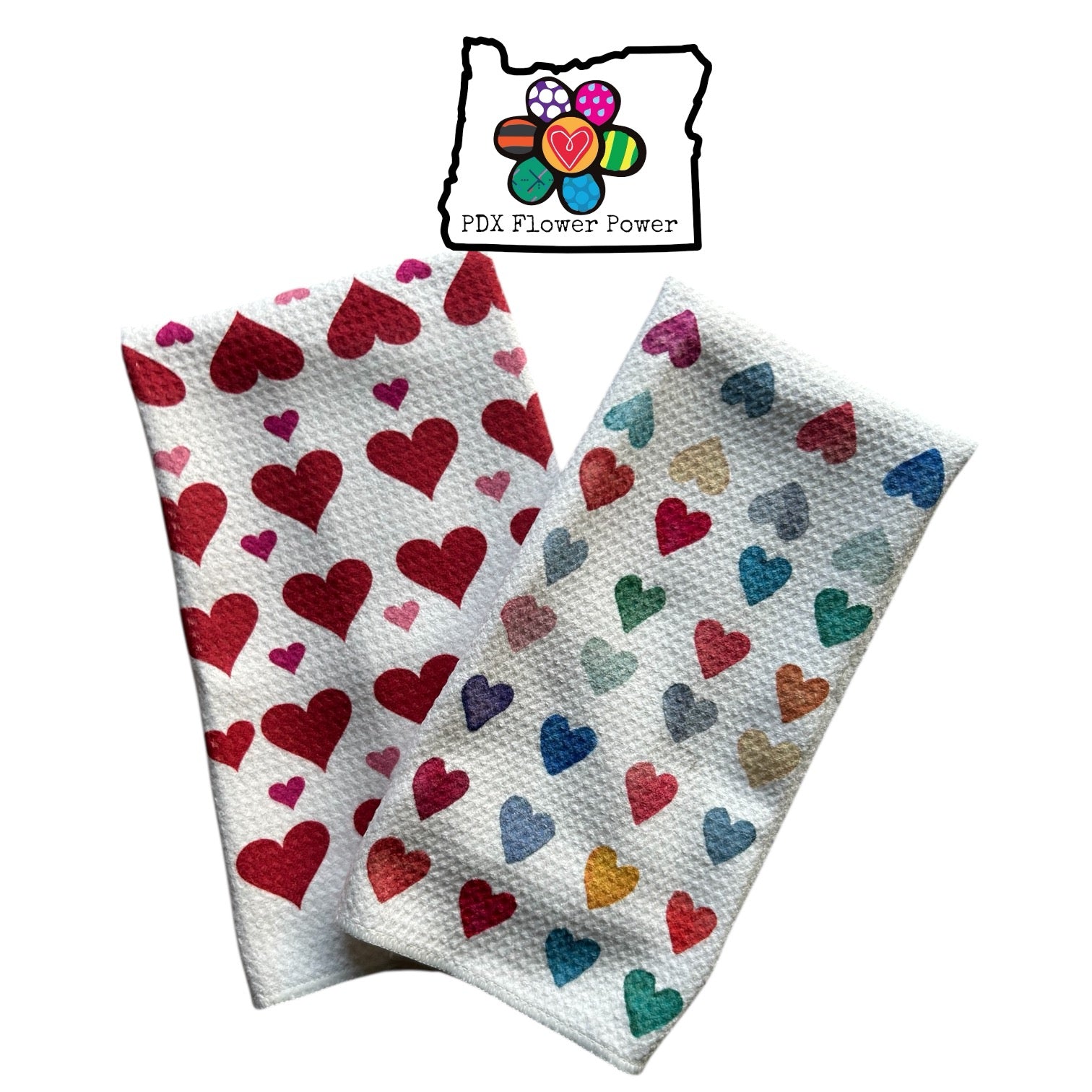 Heart Towel Duo - Valentine's Day Waffle Weave Kitchen Towel Set | PDX Flower Power